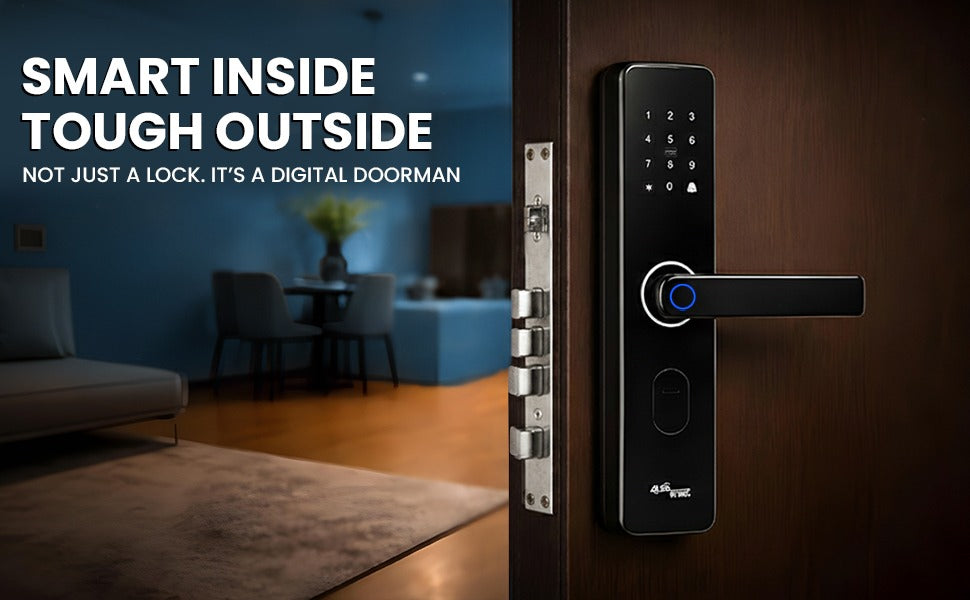 - Sleek & Sturdy Design - Heavy-Duty Aluminium Alloy Body with 6068 Mortise for High Security. Built using a premium aluminium alloy and a robust 6068 series mortise, this digital lock provides long-lasting durability, anti-pry security, and smooth door operation. Suitable for single leaf wooden flush door.